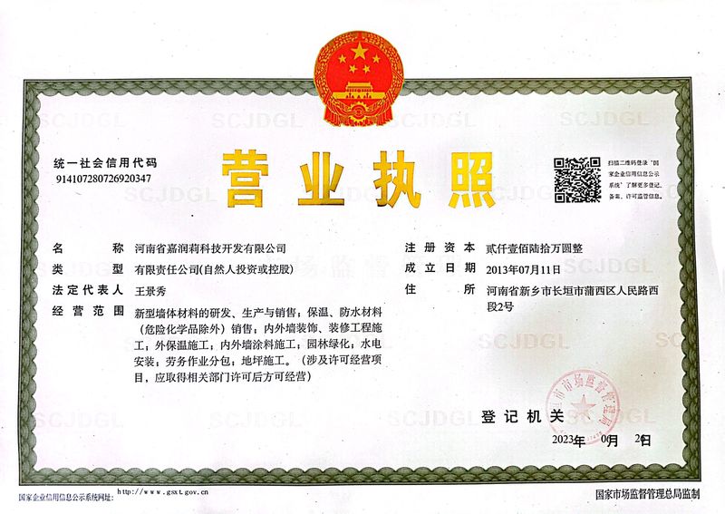 河南省嘉潤莉科技開發有限公司是一家集新型墻體材料研發、生產與銷售,內外墻裝飾裝修工程施工,保溫防腐產品經銷與一體的**化公司。生產有內外墻乳膠漆、健康拉毛漆、彈性拉毛漆、天然真石漆、質感藝術漆、特種水性漆、配套膩子、保溫砂漿等系列產品。 嘉潤莉秉承“責任、誠信、精細、創新”的宗旨,以綠色環保涂料為目標,順應未來經濟發展趨勢,從產品路線,開發理念,資源整合等方面入手,致力于建筑裝飾裝修開發與創新,為客戶提供健康生活空間,并贏取市場和......